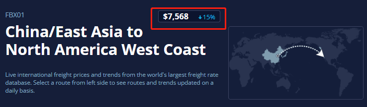 亚洲至美西的运价下跌15%即1366美元至7568美元/FEU。