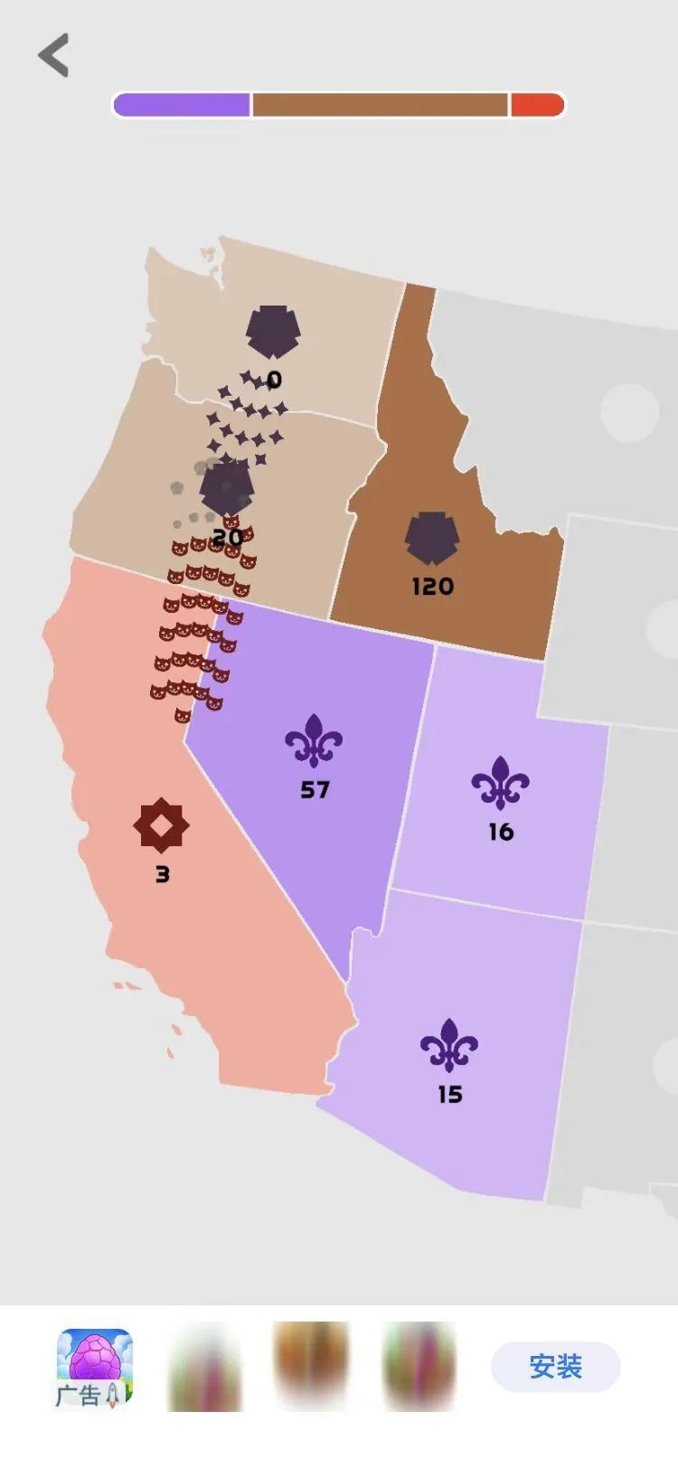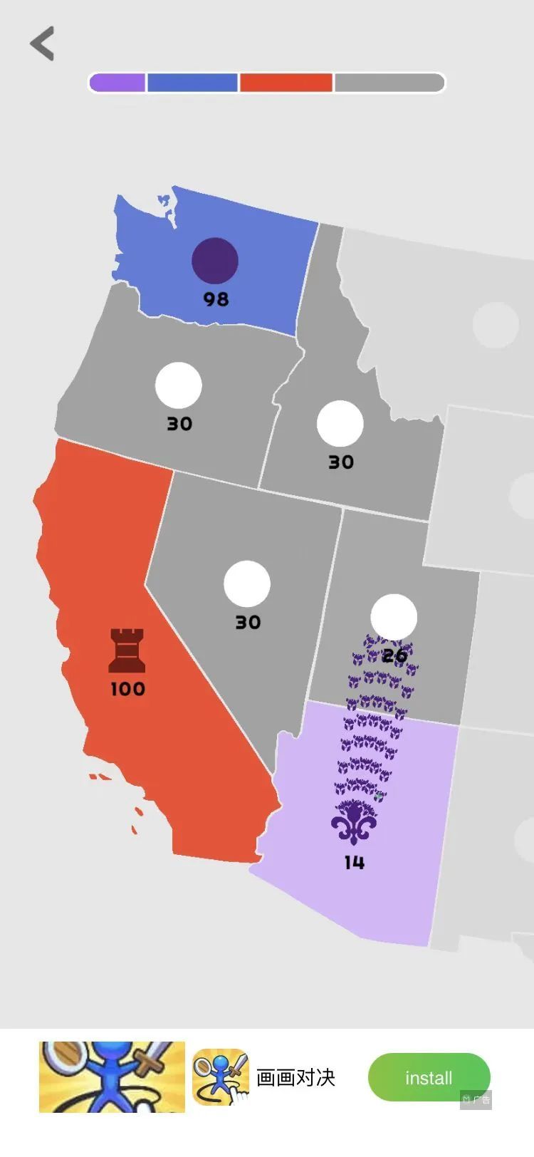 如此一来,「State.io」的单局时间就被有效地控制在了 1-2 分钟内,远远短于一般的 SLG 以及 RTS 硬核游戏。再加上玩家的操作只有调动战斗单位这一项,因此「State.io」也营造了一种"门槛低、游戏节奏极快"的入手体验。