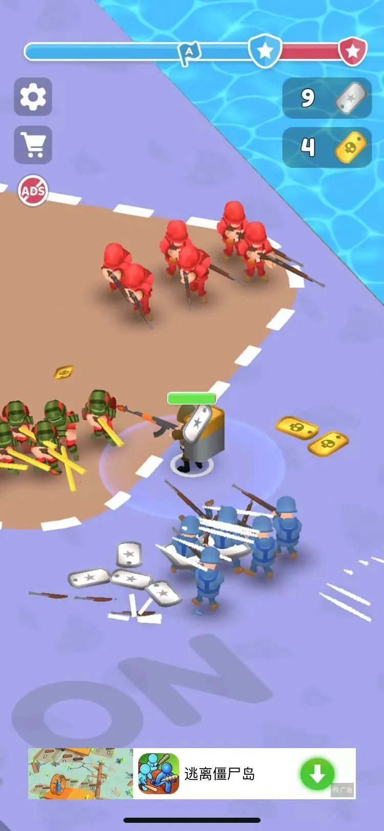 实际上,让 SLG 中的指挥和资源收集系统大幅简化,同时大幅加快战斗节奏和对抗性,市场上也已经出现了一些成功案例。由 Lion Studios 出品的「Army Commander」就是其中的代表。Sensor Tower 的数据显示,「Army Commander」的安卓版 App 曾在 2022 年 3 月 20-21 日期间位列美国安卓免费 App 总榜前十,以及免费游戏榜第二位。