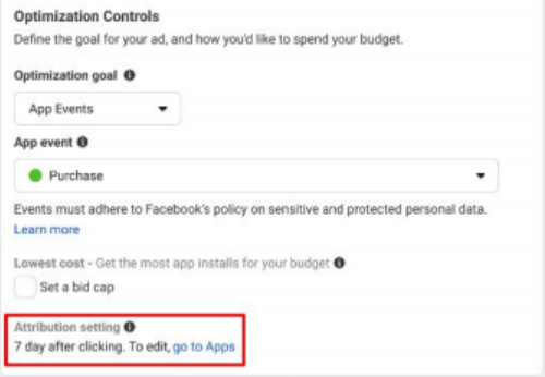 如果广告主想改变默认窗口,可以在app setting中更改。选择的归因窗口将适用于该app该优化目标的所Advantage+ app 广告系列。