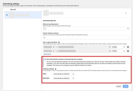 可以在app setting中更改AEO/VO campaign的默认归因窗口。您可以选择1天点击、7天点击或自动设置归因。您的选择将适用于所有该优化目标的新创建的Advantage+广告系列。