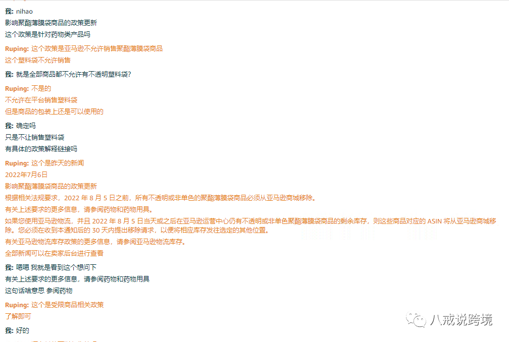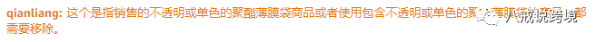 另外客服则表示,经核实该公告是面向药物和药物用具发布的,主要针对所有透明或单色的聚酯薄膜袋产品,也就是销售的listing本身,而非商品包装。