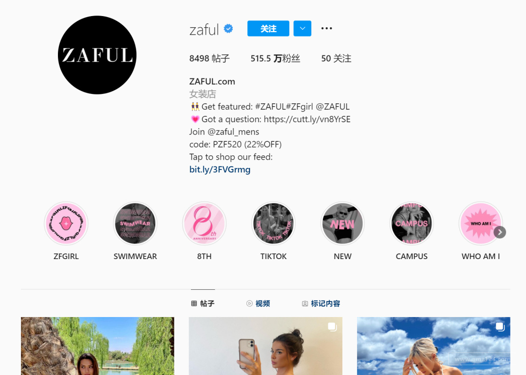 众所周知,SHEIN对社交媒体营销十分重视,这也成为其在直接对抗老牌时尚品牌的战争之中,屡战屡胜的法宝之一。 同样身处快时尚领域的ZAFUL,其在营销方面做得如何呢? 根据ZAFUL在官网的描述——"我们非常注重互联网社交媒体营销,拥有庞大的社交媒体粉丝:Facebook粉丝900万,Instagram粉丝515万,TikTok粉丝27万。"