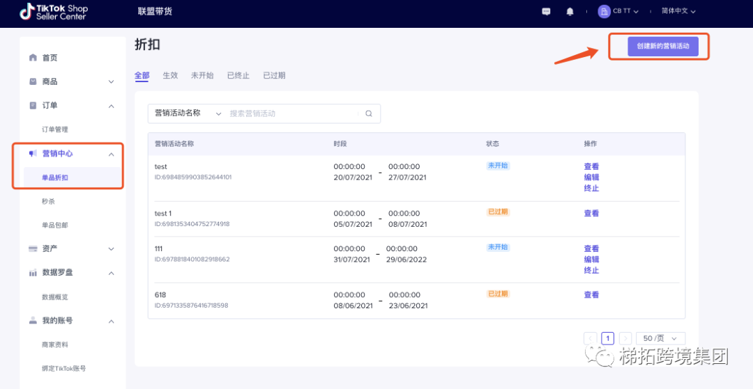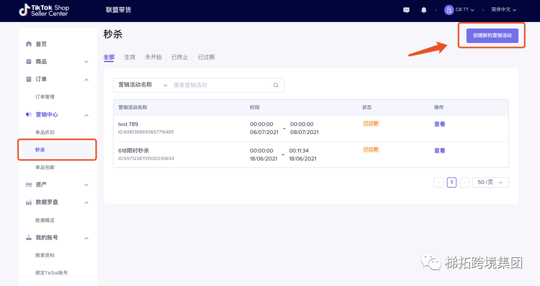 TikTok Shop创建秒杀、折扣、包邮活动入口: