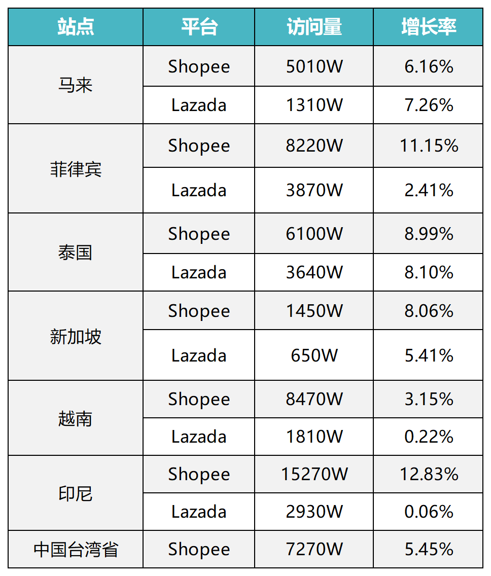 特别是印尼的Shopee站点数据极巨亮眼,访问量达到了1.52亿,相比于上个月增长了12.83%,突破了10%以上的增长大关!