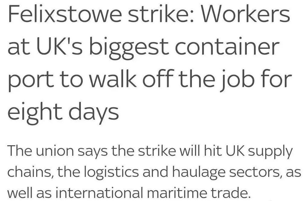 英国工会联合会宣布,费利克斯托港1,900多名工会成员工人将从8月21日至8月29日举行为期8天的罢工行动,该决定是调解服务Acas谈判失败后发生的薪酬纠纷的结果。