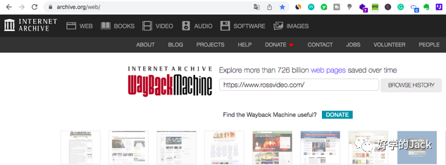 在archive.org 主页输入你想查询客户或者竞争对手的域名,点击browhistory 者一刹那,你就获得了穿越时光的能力,查看网站过去几十年的迭代更新。