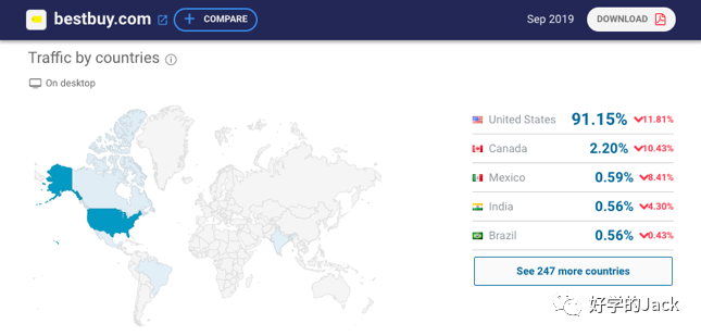 可分析竞争对手的前五大流量国家,大概猜出对方的主要市场,可结合海关数据进一步确认。