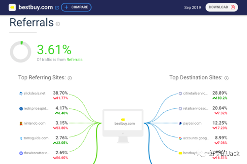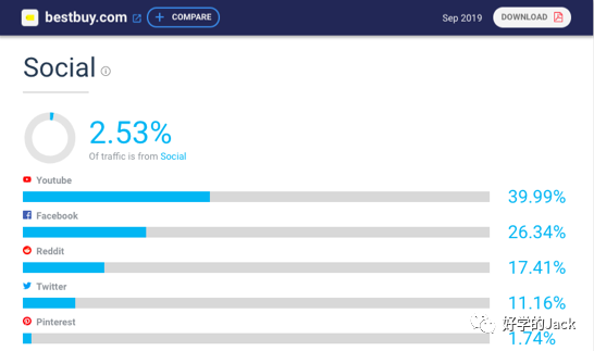 Social流量:社交媒体流量高,可以知道竞争对手在社媒这块在发力,还可以通过Similarweb查看具体哪个社媒渠道来流量比较高。