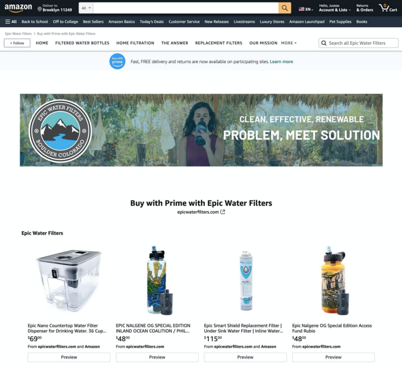 如今,亚马逊则给出了更大的"让步":在亚马逊品牌商店内,品牌主可以创建一个Buy With Prime页面,并且通过在亚马逊网站中的"赞助品牌广告"(Sponsored Brand Advertising)"向该页面引流。然后,购物者可以通过这个页面打开品牌的DTC网站,并使用Buy With Prime购买产品。这样一来,品牌就可以借助亚马逊的巨大流量优势,向自家渠道引流。