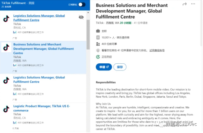 有消息称,TikTok似乎有意在美国打造一个全新的物流和仓储网络,为拓展在美电商业务打好基础。而TikTok发布招聘的网站及其LinkedIn页面上发布的招聘广告,为这一猜测做进一步佐证。