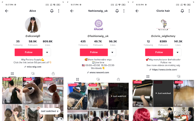 今天给大家拆解几个TikTok假发赛道的账号,看看他们是怎么精准获客的。