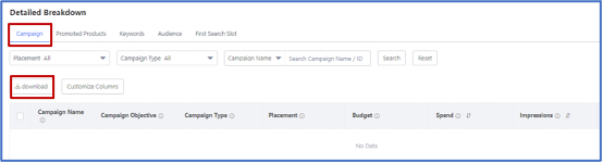 也可以在推广报表(下图例)中,下载每个计划一段时间段内的数据表格,以便独立筛选查看直通车和超级推荐各自的表现。