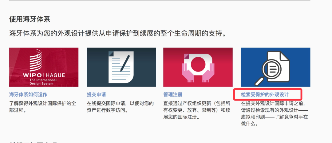 3.下拉之后点击"检索受保护的外观设计"