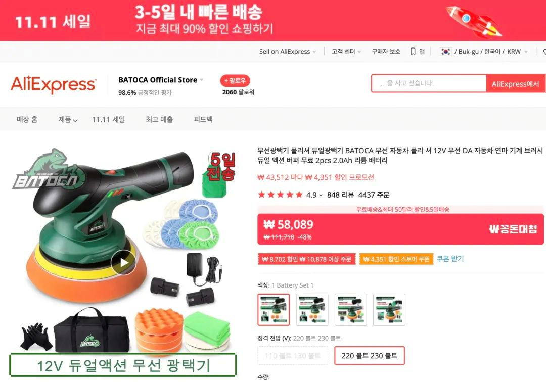 韩国是全球第五大电商市场, 作为同属东亚文化圈国家,韩国消费者的网购习惯一直和国内较为相似,但在一些特殊品类上也有轻微差异,比如韩国平均每2人就拥有一辆汽车,很多人拥有私人车库,这使得近几年韩国"车库经济"相关商品增长迅速,韩国消费者尤其喜欢来自中国的汽车用品。Batoca就是抓住了这样的机会,2022速卖通双十一开卖仅半小时,汽车用品品牌Batoca的销售额就超过去年11.11全天,同比增涨了1200%。