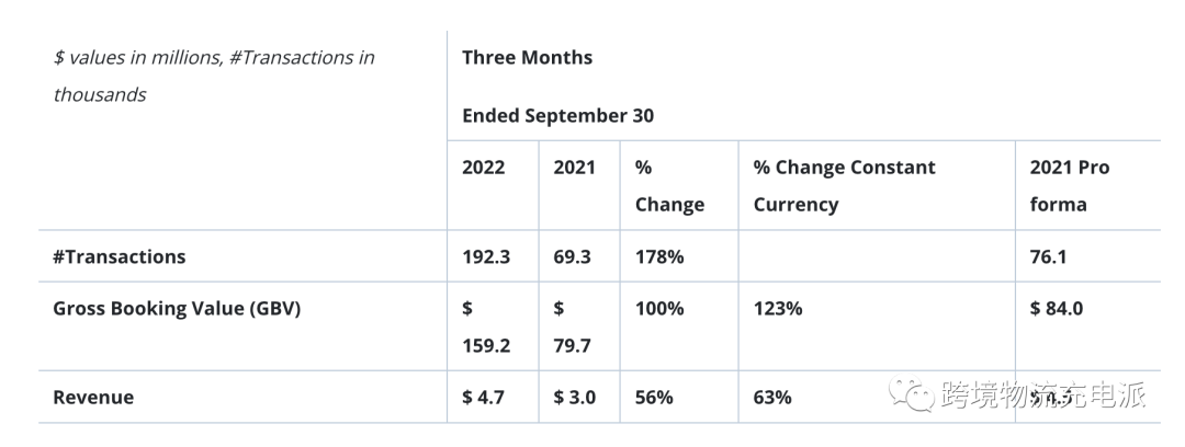 官方发布的消息称,第三季度交易增加到 192,000 笔,同比增长 178%,比第二季度增长 28%,GBV 达到 1.59 亿美元,同比增长 100% 。