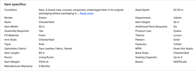 对于eBay家居产品的买家来说,商品的独特性是他们关心的重点。因此,为了让买家能更了解您的产品,建议您尽可能多地把可以提供的产品信息,也就是Item specifics商品属性填写完整,让产品在买家的筛选过程中有更多机会被检索到。以下为优秀案例。