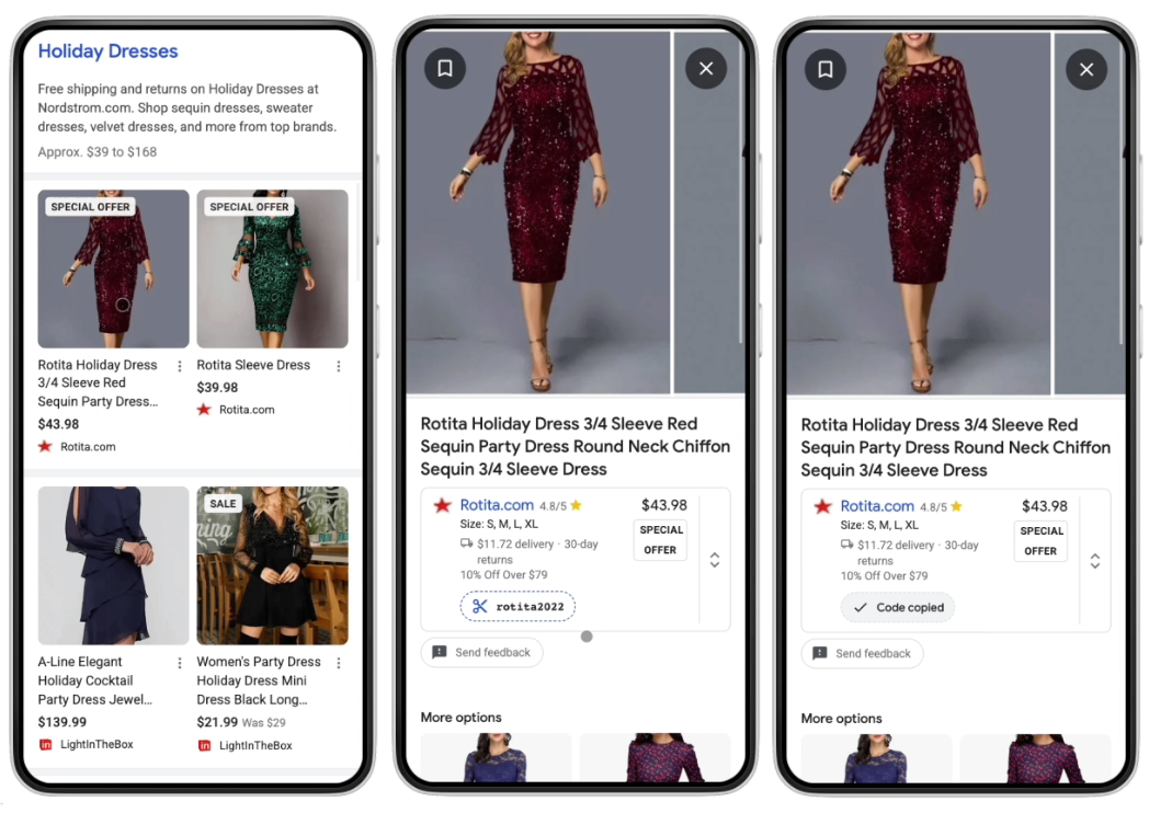 首先,谷歌将优惠券代码和促销活动集成到产品搜索结果中,这将帮助人们与季节性优惠和交易建立联系,而无需去其他地方搜索相关信息。