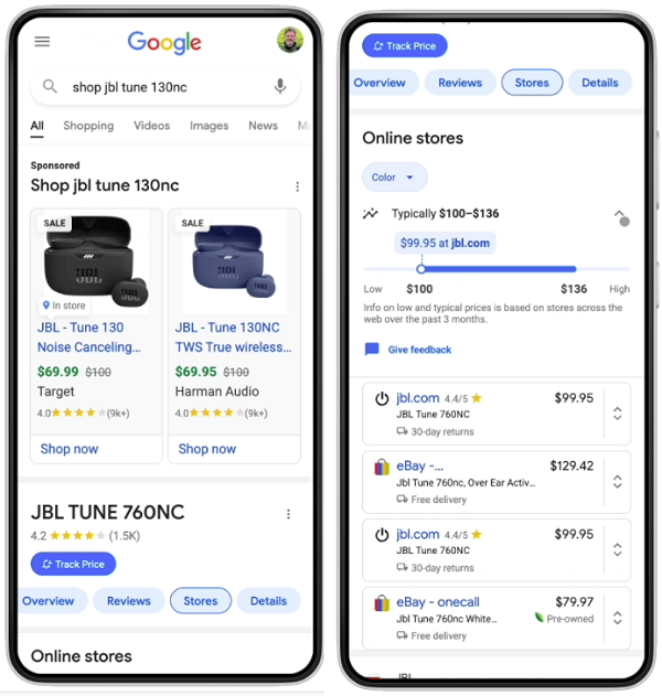 最后,谷歌还在产品搜索结果中添加了更多的价格比较信息。