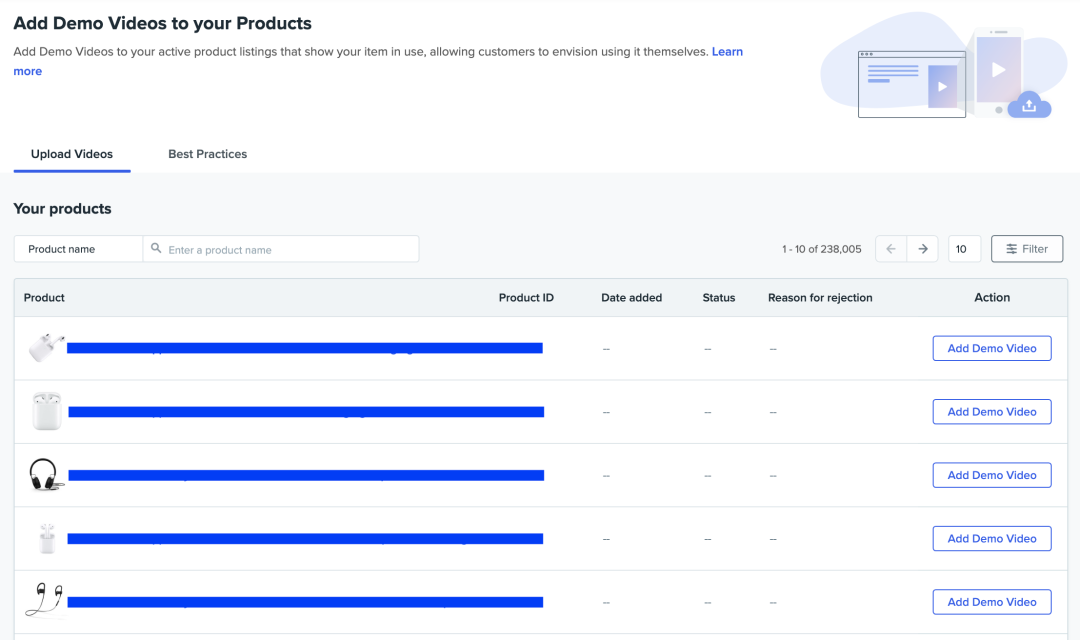 卖家可以在商户平台上手动上传产品视频,也可以通过 API、CSV 或某些 ERP 上传。