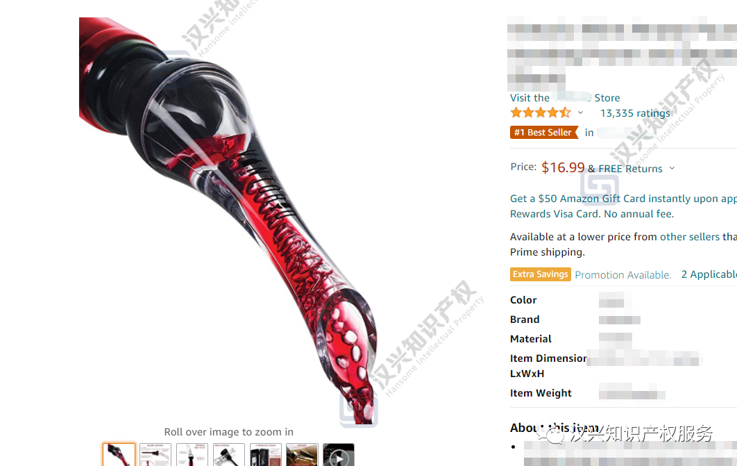 下面这款醒酒器,目前是亚马逊美国站的#1 Best Seller,现有留评数高达13,355,售价为16.99美金: