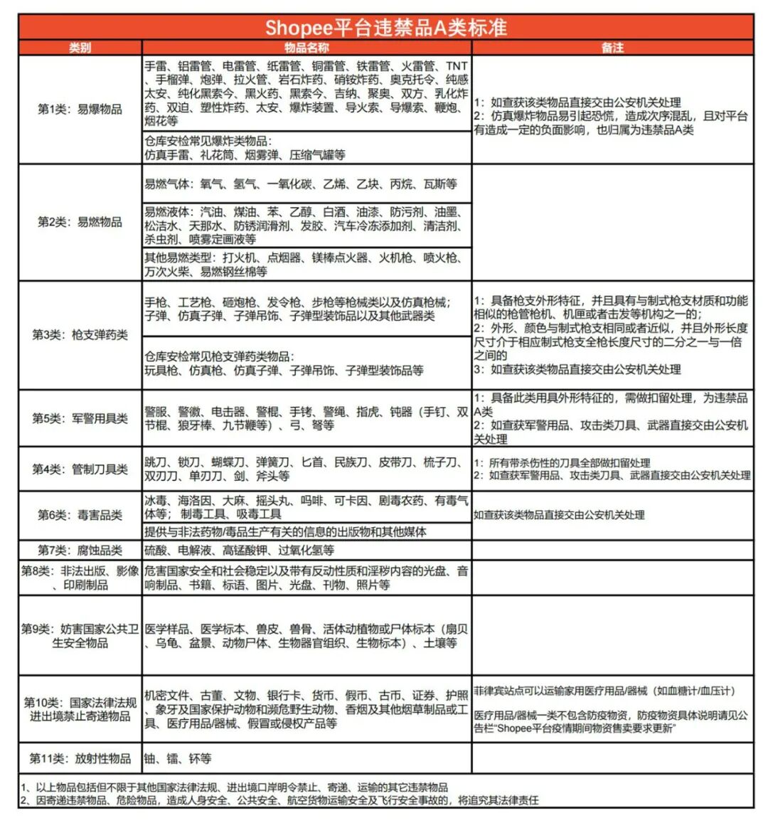 近日,Shopee平台发布公告,更新马来站点、泰国站点违禁品B类标准。