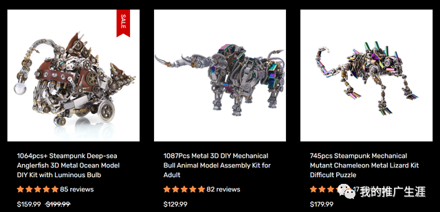 这个网站之前也介绍过一次,主要是卖3d金属拼图玩具,这个网站是国人的,不过现在已经屏蔽了国内ip访问了,这类的玩具客单价真不错,如下图都是一百几十美元的。