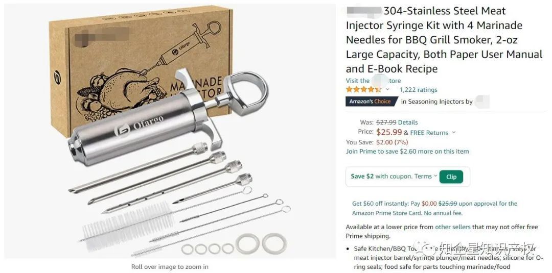 今天在浏览亚马逊的时候,看到一款调料注射器,它是美亚站的Amazon'sChoicein Seasoning Injectors ,售价25.99美金,留评1228星。