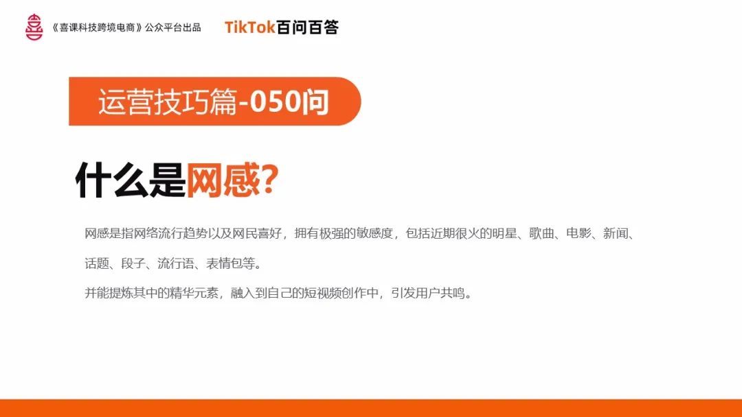 网感是指网络流行趋势以及网民喜好,拥有极强的敏感度,包括近期很火的明星、歌曲、电影、新闻、话题、段子、流行语、表情包等。并能提炼其中的精华元素,融入到自己的短视频创作中,引发用户共鸣。
