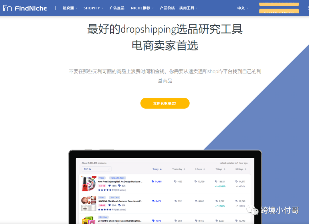 FindNiche这款工具面向的客户群是速卖通、独立站的卖家以及各渠道做推广的"车手"们。涵盖了速卖通以及Shopify上的一些细分领域。