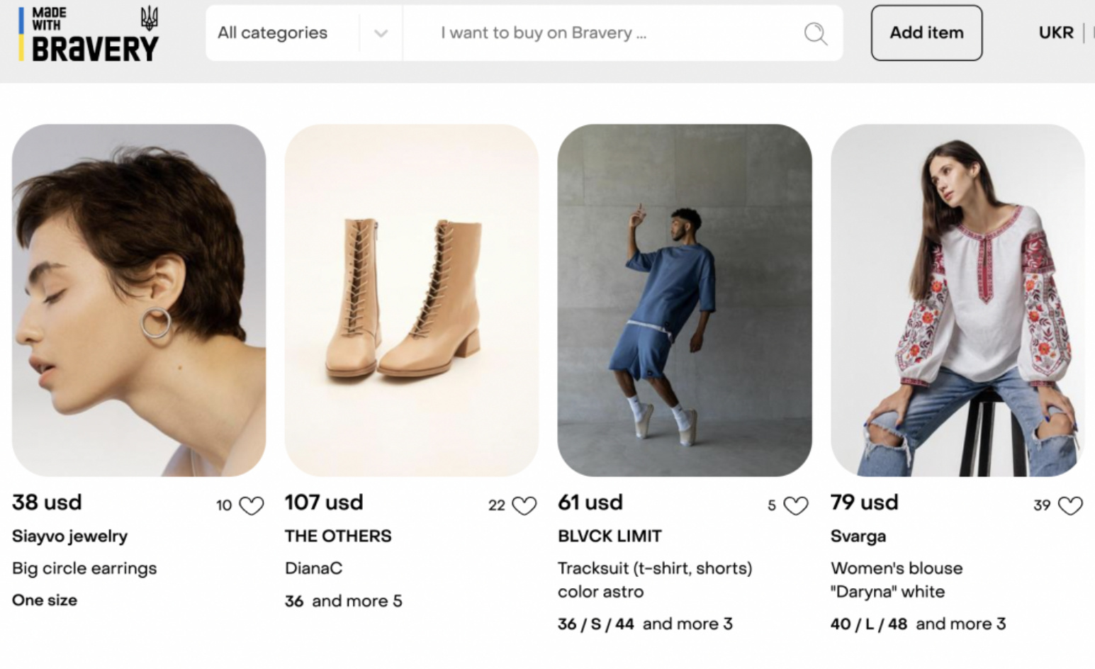 "Made with Bravery"上的产品主要是乌克兰产品以及具有代表性的产品。目前所销售的产品范围主要包括时尚产品和带有"勇敢"和"像乌克兰一样勇敢"等口号的商品。