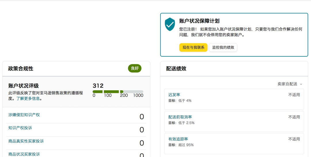 在亚马逊后台绩效---账户状况里更新了:账户状况保障计划,看名字就好让人激动呀。账户状况保障计划,赶紧详细看看是什么内容吧!